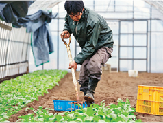 葉物は鮮度が命。週3回、大地を守る会に出荷していますが、朝5時から畑に出て、ぴんと張りのいいところを収穫しています。