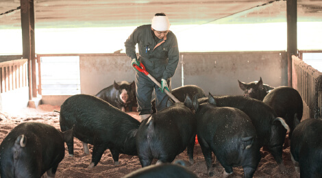 生産者は豚にストレスがかからないよう、のびのび動ける豚舎で健康に飼育。寒い季節にはヒーターを入れ、毎日の掃除を欠かさず、豚が快適に過ごせるようにしています。また、一般的な豚の肥育期間より1カ月長く育てることで、肉にしっかりうまみをのせています。