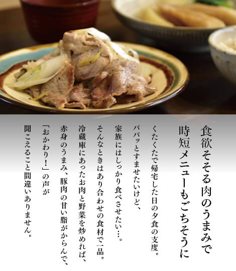 長ねぎなどの野菜と一緒に炒めて、塩・こしょうでシンプルに味付けしてどうぞ。赤身のうまみ、脂身の甘みにごはんがすすみます。